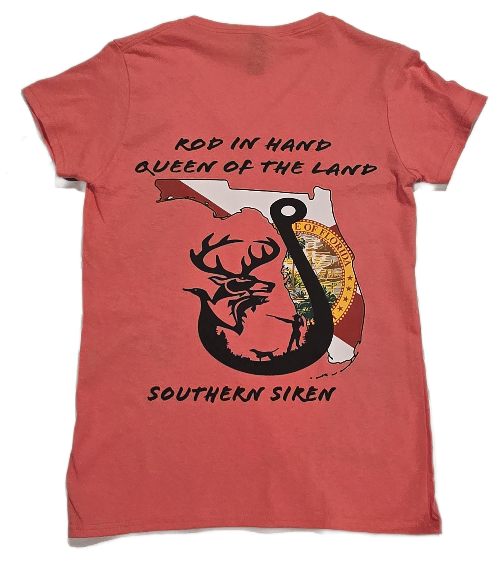 Southern Siren Cotton V-Neck T-Shirt "Rod in Hand Queen of the Land"